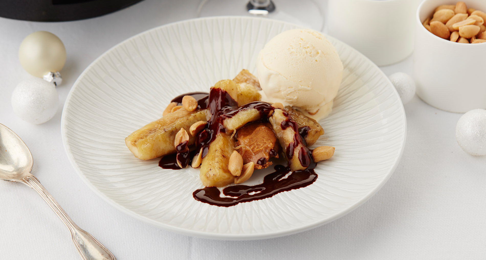 Door het fruit af te blussen met warme room krijg je een volle rijke karamelsaus met stukken banaan waar je je vingers bij opeet.