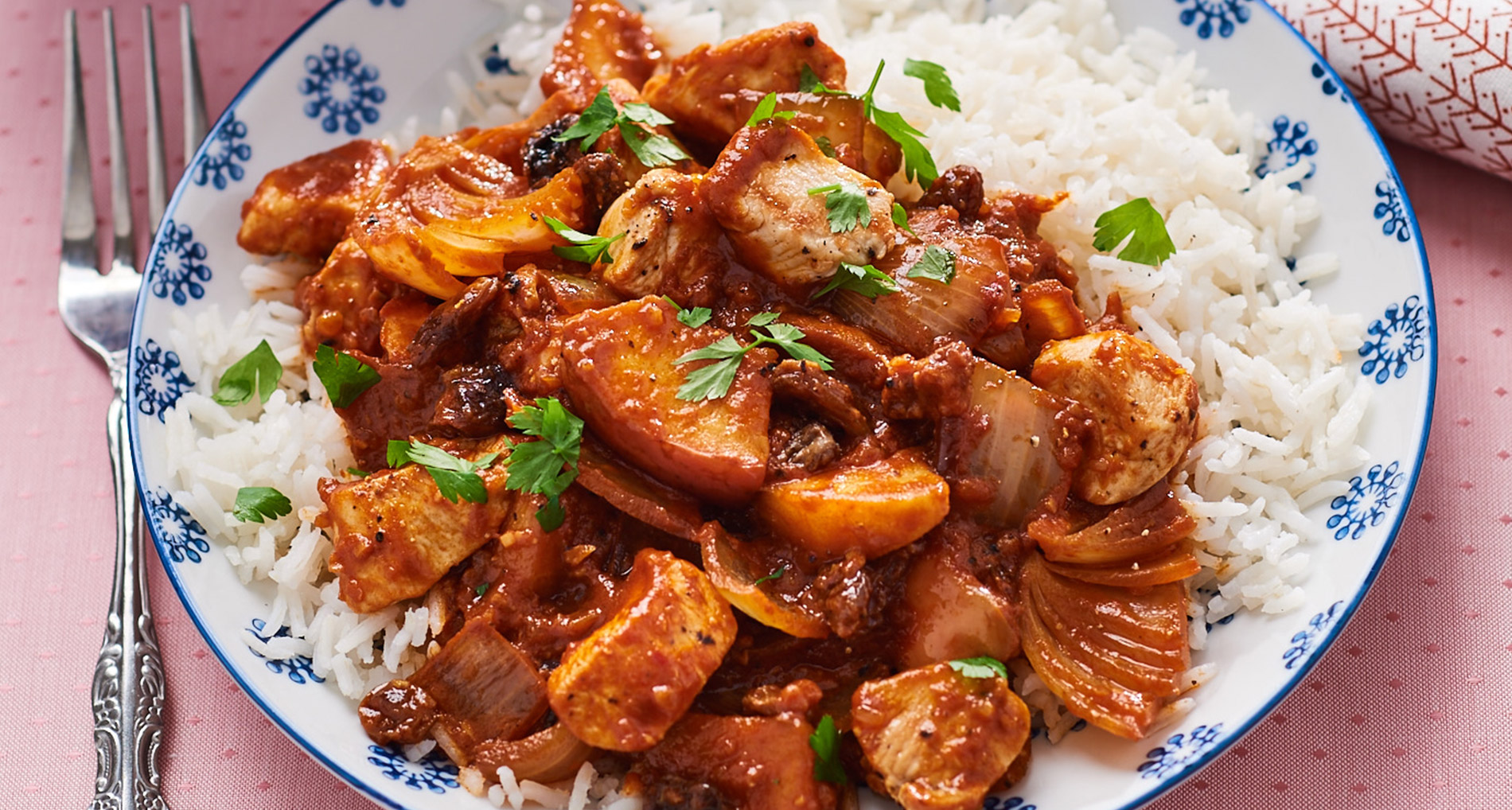 Deze curry is zo een gerecht dat je makkelijk in je vaste repertoire opneemt. De basis is simpel, je hebt geen ingewikkelde ingrediënten nodig en toch proef je véél aan smaak. De warmte van de gember, het zachte zoetige van de kokosmelk en dan dat pittige Madras-kruidenmengsel dat alles bindt. Door kipdijfilet te gebruiken blijft het vlees sappig, ook als de pan net even wat langer op het vuur staat. Je kunt met dit recept ook heel goed spelen. Mag het wat milder? Dan voeg je iets meer kokosmelk toe of serveer je er een lepel yoghurt bij. Houd je juist van extra pit, strooi dan aan het eind nog wat extra chilivlokken over de curry. Met groenten kun je variëren met wat je in huis hebt. Bloemkoolroosjes, zoete aardappel of wat spinazie uit de diepvries doen het allemaal goed in deze saus. En als je toch bezig bent, maak dan meteen een dubbele portie.