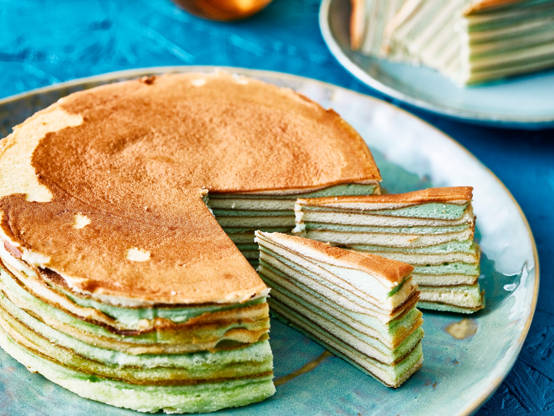 Liever pandan spekkoek maken? Laat het bruine beslag dan achterwege en maak de dubbel hoeveelheid van het lichte beslag. Deel dit lichte beslag in twee delen en door één deel meng je 1 tl pandan extract.