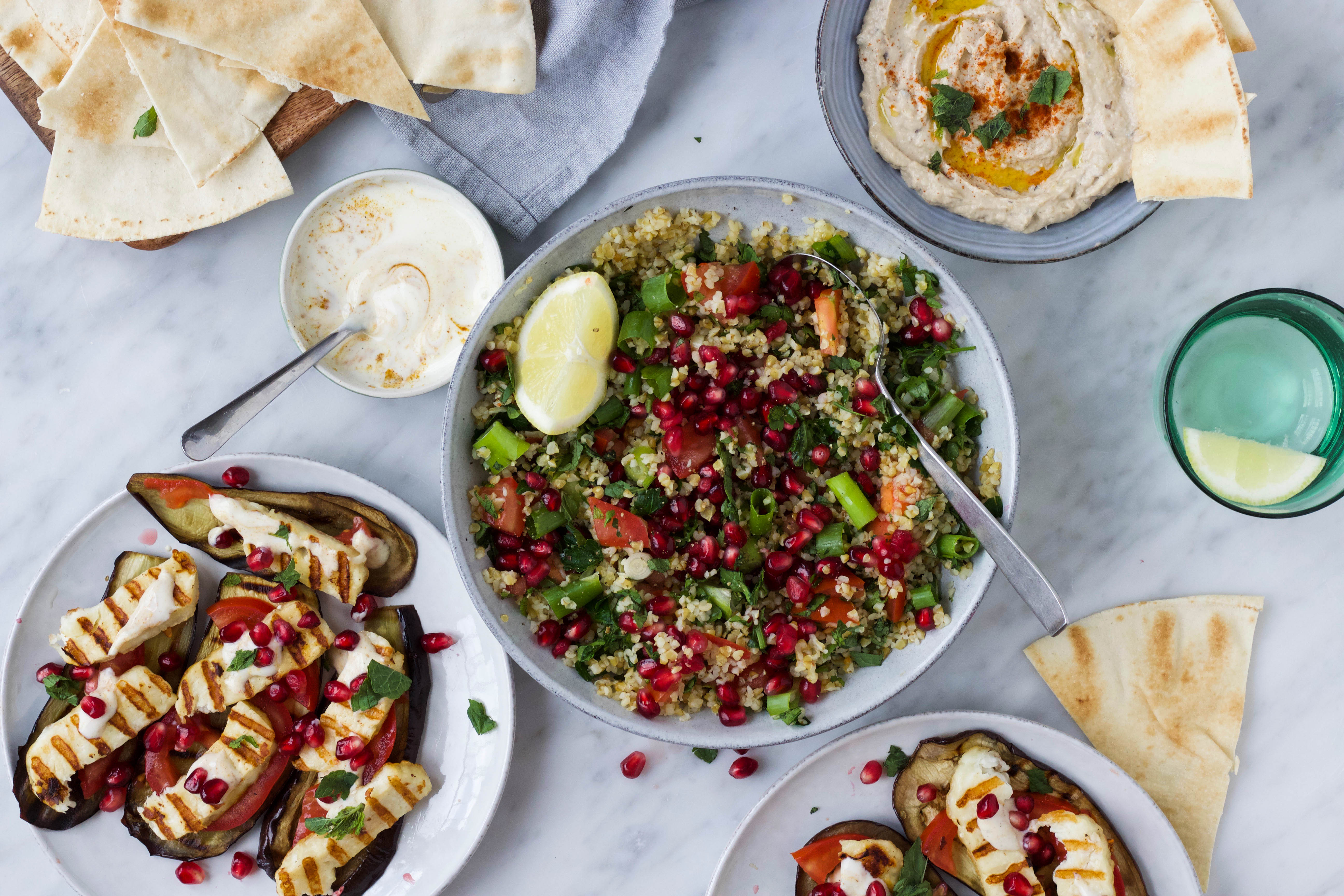 Het Midden-Oosterse voedingspatroon (met regionale verschillen) is grotendeels vegetarisch. Het bestaat voornamelijk uit groenten, fruit, kruiden en specerijen, en complexe koolhydraten zoals peulvruchten en granen en daarnaast nog wat zuivel en behoorlijk wat olijfolie. Vlees, vis en gevogelte worden wel gegeten maar meer als toegevoegde extra’s. De mensen uit het Midden Oosten zijn daarom meesters in het bereiden van groenten en granen: door de eeuwen heen hebben ze talloze interessante manieren geleerd om groenten te bereiden en als de spil van het gerecht te presenteren in plaats van ze tweede viool te laten spelen naast een lap dierlijk eiwit.